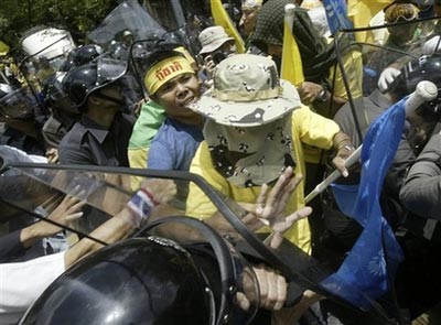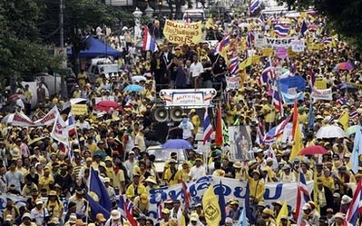 此次反政府活動是由泰國人民民主聯(lián)盟(民盟)組織的。示威者和警察的對峙使得總理府周邊區(qū)域陷入混亂,道路的交通完全中斷,學(xué)校停課,總理府各部門不得不放假一天。