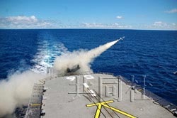 日本海上自衛(wèi)隊(duì)的“瀨戶(hù)霧”號(hào)護(hù)衛(wèi)艦在環(huán)太平洋聯(lián)合軍演中發(fā)射防空導(dǎo)彈。