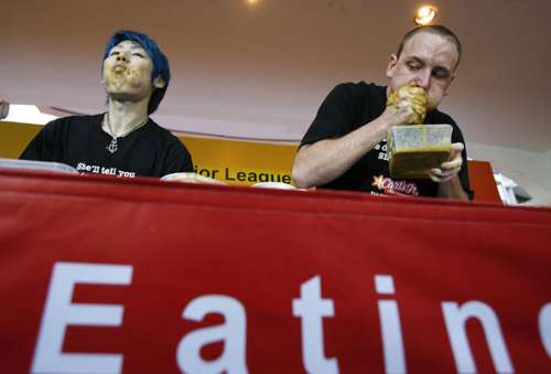 小林在競食界得獎無數(shù),曾連續(xù)六年贏得美國紐約知名的“內森”熱狗競食大賽冠軍,但在二○○七年和剛過去的七月四日連續(xù)兩屆輸給切斯納特飲恨。