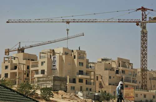 巴勒斯坦建筑工人十二日在西岸一個(gè)建筑工地工作。