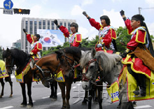 據(jù)日本共同網(wǎng)報(bào)道,這些學(xué)生屬于一個(gè)旨在傳承國家傳統(tǒng)騎馬武藝的韓國團(tuán)體。6人一邊高喊著“獨(dú)島是我們的領(lǐng)土”,一邊騎馬來回于在大使館附近。