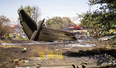 發(fā)生空難的地面一片焦黑,可見斷開的機(jī)尾。