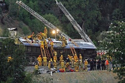 洛杉磯地區(qū)城市軌道客運(yùn)系統(tǒng)1992年建成運(yùn)行,全長400多公里,它將洛杉磯市區(qū)與周圍的許多小城市連接起來。12日的列車相撞事故成為這一軌道客運(yùn)系統(tǒng)有史以來傷亡最慘重的一次事故。(記者曹衛(wèi)國)