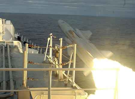中國海軍戰(zhàn)艦發(fā)射俄制日炙反艦導彈(資料圖)