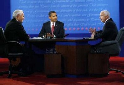 中新網(wǎng)10月16日電 綜合報道,美國共和黨總統(tǒng)候選人麥凱恩和民主黨總統(tǒng)候選人奧巴馬于美東時間15日晚上9時(北京時間16日早上9時)在紐約霍夫斯特拉大學展開總統(tǒng)選舉投票前的最后一場電視辯論。