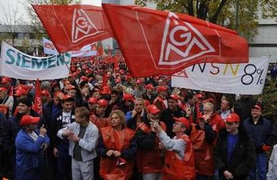中新網(wǎng)11月4日電 綜合報道,德國數(shù)以十萬計的有色金屬和電子工人3日舉行罷工,要求大幅度提高工資。德國工會IG Metall 說,工人3日在工作時參加了罷工。