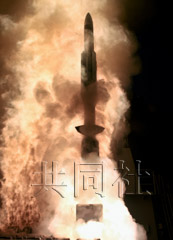 日本宙斯盾艦“鳥!碧柊l(fā)射“標準3”(SM3)型攔截導彈。