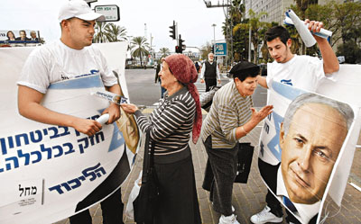 內(nèi)塔尼亞胡日前出席一項(xiàng)安全會(huì)議時(shí)表示,以色列根據(jù)和平協(xié)議放棄的土地,將被極端分子掠奪,他建議集中改善巴勒斯坦的經(jīng)濟(jì),而非建立一個(gè)獨(dú)立國(guó)家,言論遭受巴人和國(guó)際社會(huì)反對(duì)。雖然各候選人都主張強(qiáng)硬對(duì)付哈馬斯,但以內(nèi)塔尼亞胡的立場(chǎng)最強(qiáng)硬,他說:“除了把在加沙的伊朗支持政權(quán)連根拔起外,別無選擇!