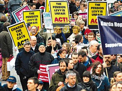 中新網(wǎng)2月23日電 受環(huán)球經(jīng)濟(jì)衰退影響,再有歐洲國(guó)家爆發(fā)大規(guī)模示威。據(jù)香港《文匯報(bào)》報(bào)道,12萬愛爾蘭人21日走上首都都柏林街頭,抗議政府拯救經(jīng)濟(jì)不力。參與示威的包括教師、公務(wù)員甚至警察,由于人數(shù)太多,主辦單位要提早出發(fā),人龍一度填滿長(zhǎng)達(dá)兩公里的游行路線。