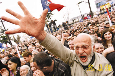 中新網(wǎng)4月10日電 據(jù)香港《文匯報》報道,格魯吉亞首都第比利斯9日有至少6萬人上街示威,要求總統(tǒng)薩卡什維利下臺。反對派領(lǐng)袖指摘他獨(dú)攬大權(quán),以及違反他于2003年憑借玫瑰革命上臺時作出的改革承諾,矢言每天都會在國會外示威,直至他下臺。