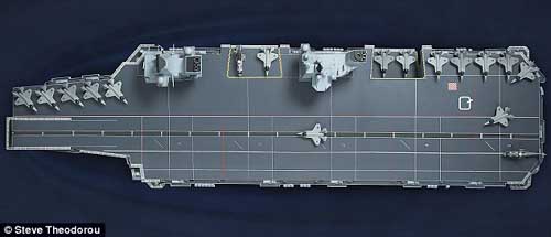 比例1:200的“伊麗莎白皇后號(hào)”和“韋爾斯親王號(hào)”模型,目前擺放在航母設(shè)計(jì)總部的大堂。每艘母艦有6層甲板,最頂是巨型起飛甲板,可運(yùn)載36架最先進(jìn)的聯(lián)合攻擊戰(zhàn)斗機(jī)和4架直升機(jī),每艘航母能在15分鐘內(nèi)讓24架飛機(jī)升空。