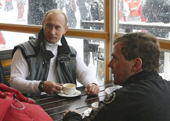 中新網(wǎng)1月4日電 綜合報(bào)道,俄總統(tǒng)梅德韋杰夫和總理普京3日一起在俄羅斯南部度假勝地索契的波利亞納滑雪場(chǎng)過(guò)新年。兩人在一起飲茶后,梅德韋杰夫起身結(jié)賬,普京緊跟在后,并未準(zhǔn)備買單。普京表示:“無(wú)論買什么東西都是總統(tǒng)付錢! 梅德韋杰夫則“大方”回應(yīng):“付賬是我的工作。”