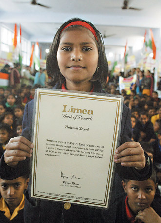 現(xiàn)年9歲的韋瑪(Sushma Verma)目前在北方省首府勒克瑙的圣米拉國際學(xué)院就讀,她2007年參加大學(xué)入學(xué)考試時,只有7歲零3個月又28天。