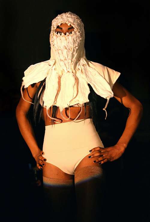 模特兒佩戴著這款遮蓋了整張臉,只露出眼睛的頭飾,在天橋上婀娜多姿地走過,老鼠尾巴在額前晃來晃去,鼠須輕輕碰觸她的皮膚。這款頭飾是法國出生的高級理發(fā)師查利-勒門杜的作品。