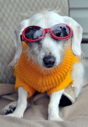 據(jù)香港《大公報》報道稱,臘腸犬香奈爾身穿黃色毛衣、戴著紅框太陽眼鏡。它的主人丹尼斯替它接受了這一殊榮。香奈爾曾是紐約的一只救援犬。