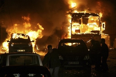 當(dāng)?shù)仉娨暸_(tái)報(bào)道稱,爆炸后,現(xiàn)場(chǎng)躺著數(shù)名昏迷不醒的傷者,一輛大客車正在燃燒,6輛轎車被炸毀,爆炸后四處飛散的玻璃還扎傷了附近一些大學(xué)生。