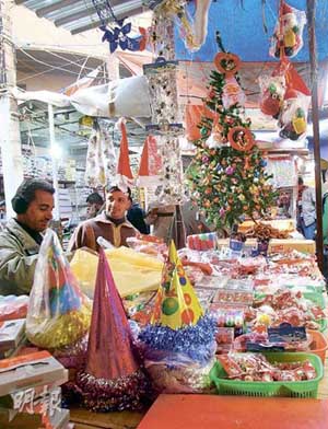 伊拉克市面上有不少售賣圣誕飾物的攤檔。