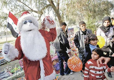 中新網(wǎng)12月23日電 伊拉克03年戰(zhàn)爭后銷聲匿跡的圣誕慶;顒,今年終重現(xiàn)巴格達(dá)。據(jù)香港《明報》23日綜合外電報道,隨著伊拉克局勢過去1年終見好轉(zhuǎn),伊拉克政府也5年來首次在一個公園辦慶賀圣誕活動,圣誕老人在圣誕樹影與彩球間,怡然帶動歡樂氣氛。然而在場記者指出,只要稍為放眼外望,便可察覺公園內(nèi)的歡樂祥和,全靠公園外戒備森嚴(yán)的士兵支撐。
