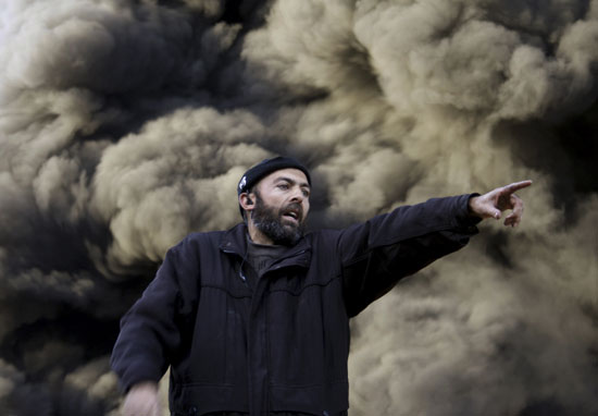 濃煙中的一名巴勒斯坦人。