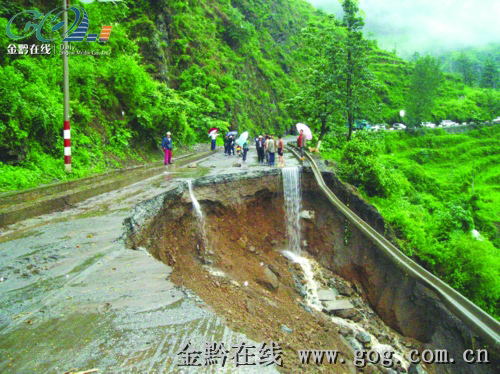 據(jù)了解,興義公路管理局晴隆段沙子養(yǎng)護(hù)站職工6月28日7時(shí)30分在巡查到國(guó)道320線2342公里600米(晴隆縣大水溝)處時(shí),發(fā)現(xiàn)該處路基已經(jīng)塌方且路基全部垮塌。據(jù)測(cè)算,塌方體長(zhǎng)為35米,寬9米,高12米。由于應(yīng)急措施到位,兩百余輛過路車輛在公路和交警人員的引導(dǎo)下得到疏散,未發(fā)生車輛受損和人員傷亡情況。