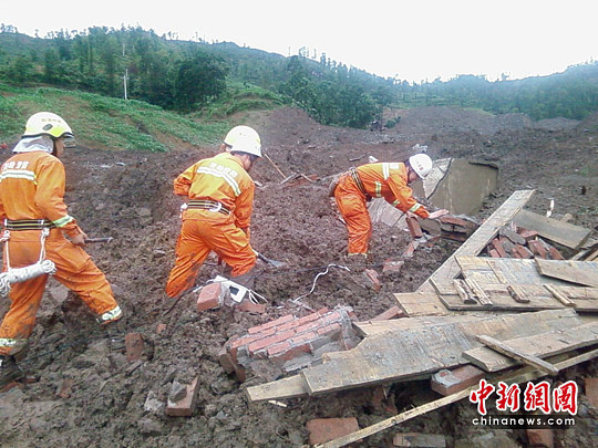 中新網(wǎng)6月29日電 6月28日14時30分左右,貴州省關(guān)嶺縣崗烏鎮(zhèn)大寨村因連續(xù)強降雨引發(fā)山體滑坡,造成該村兩個村民組107人被困或被掩埋。據(jù)中央電視臺最新消息,經(jīng)過幾個小時的緊張救援,之前疑似發(fā)現(xiàn)生命跡象的吊腳樓已經(jīng)被救援官兵打開,里面全是淤泥,并沒有找到兩名7歲和9歲的男孩。