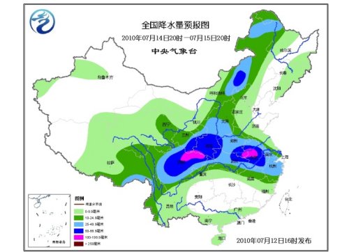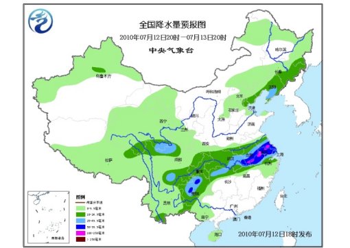 中新網(wǎng)7月12日電 據(jù)中央氣象臺網(wǎng)站消息,未來三天,青藏高原東部及其以東大部地區(qū)有一次明顯降水天氣過程,其中,黃淮西部、江漢、江淮、江南北部、四川盆地等地有大到暴雨,部分地區(qū)有大暴雨;青海東南部、內(nèi)蒙古中東部、黑龍江西北部、吉林東部、山西西南部、陜西大部、甘肅南部和東部、貴州大部、西藏東南部、云南西部和南部等地的部分地區(qū)有大雨,局地有暴雨;上述部分地區(qū)并伴有短時雷雨大風或冰雹等強對流天氣。