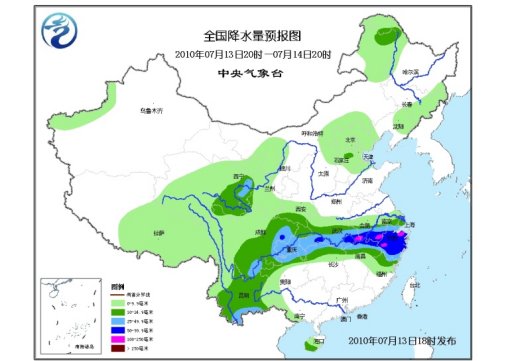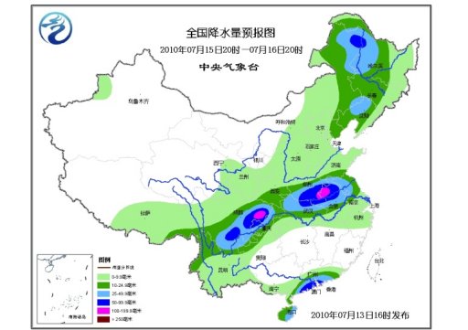 中新網7月13日電 據(jù)中央氣象臺網站消息,未來三天,青藏高原東部及其以東大部地區(qū)有一次明顯降水天氣過程,其中,長江流域和淮河流域以及廣東南部、海南東部、云南南部和北部的部分地區(qū)、甘肅南部、陜西大部、山西西南部等地有大到暴雨,部分地區(qū)有大暴雨;青海東部、內蒙古中東部、黑龍江西部、遼寧西北部、河北西北部等地的部分地區(qū)有大雨;上述部分地區(qū)并伴有短時雷雨大風或冰雹等強對流天氣。