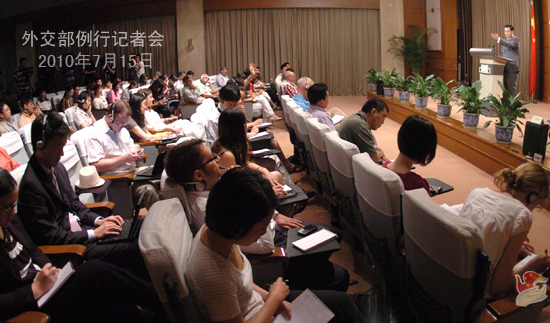2010年7月15日外交部發(fā)言人秦剛舉行例行記者會。