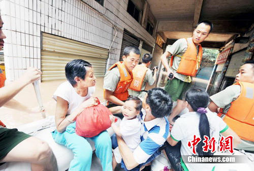 在特大洪水來臨之際,廣安市武警官兵充分發(fā)揮“特別能吃苦,特別能戰(zhàn)斗,特別能奉獻”的精神,積極戰(zhàn)斗在抗洪搶險第一線,與洪水賽跑,與時間賽跑,深入街巷搜尋和和轉運被洪水圍困的居民,確保群眾生命安全。 截至記者發(fā)稿時,廣安目前還沒有因為洪水造成的人員傷亡。(完)