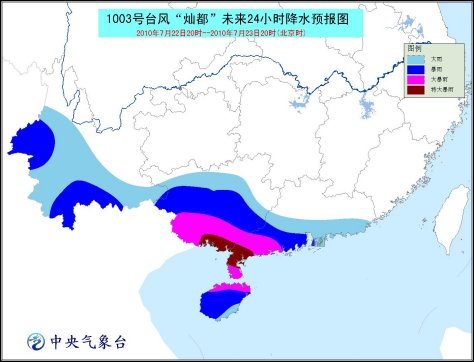 受其影響,22日晚上到23日白天,南海西北部、海南沿海、瓊州海峽、北部灣、廣東西部沿海、廣西沿海將有7-9級大風,部分海域或地區(qū)風力可達10-11級,陣風12級;廣東沿海和西南部、廣西大部、海南、云南西部和南部等地有大雨或暴雨,其中,廣東西南部、廣西南部、海南北部的部分地區(qū)有大暴雨或特大暴雨。