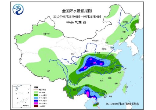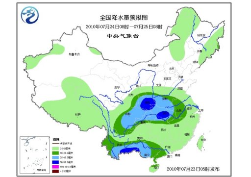 中新網(wǎng)7月23日電 據(jù)中央氣象臺預報,未來三天,新疆西部和天山地區(qū)、西北地區(qū)東部、內(nèi)蒙古中東部、東北、華北南部和東北部、江淮、江漢、江南、華南、西南等地將有小到中雨,其中,黑龍江西北部、甘肅東部、陜西中南部、山西西南部、黃淮西部和南部、江淮大部、江漢、江南北部、貴州北部和西南部、四川盆地、重慶、云南大部、廣西中南部和西部、廣東西南部、海南北部將有大雨或暴雨,廣西東南部和西部、四川盆地西北部、陜南東北部和關中西北部、河南西南部的局地有大暴雨;上述部分地區(qū)并伴有短時雷雨大風或冰雹等強對流天氣。