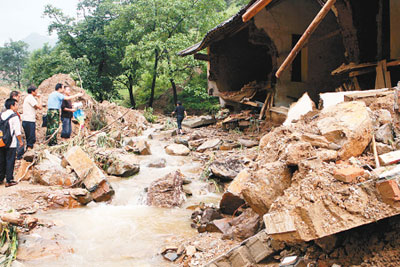這是此次商洛地區(qū)發(fā)生水災(zāi)以來,一個村組集中死亡、失蹤最多的。目擊群眾講,那不是“泥石流”,而是“泥山流”,因為把一排房屋“像風吹紙片”一樣沖倒的,是數(shù)不清的幾個人合抱不住的大石頭,時間僅持續(xù)了一分鐘左右。