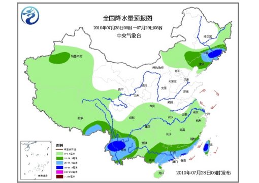 中新網(wǎng)7月28日電 據(jù)中央氣象臺預報,未來三天,新疆中南部、青藏高原大部、內(nèi)蒙古中東部和河套地區(qū)東部、東北、華北北部、黃淮西部、江漢、江淮大部、江南、華南、西南大部有小到中雨,其中,西藏東南部、川西高原東南部、云南大部、廣西大部、廣東大部、臺灣大部、貴州東南部、湖南南部、江西中南部、福建中南部及東北南部和西北部、內(nèi)蒙古中部偏南地區(qū)等地有大雨或暴雨;上述地區(qū)局地并伴有短時雷雨大風或冰雹等強對流天氣。