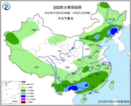 中新網(wǎng)7月30日電 據(jù)中央氣象臺預(yù)報(bào),未來三天,新疆西部、西藏大部、內(nèi)蒙古中東部、東北、華北、黃淮、江淮、江漢、江南、華南、西南地區(qū)大部等地先后有小到中雨,其中,遼寧、吉林中東部、華北中部偏東地區(qū)、廣西、云南南部等地有大雨,部分地區(qū)有暴雨;上述地區(qū)局部并伴有短時(shí)雷雨大風(fēng)或冰雹等強(qiáng)對流天氣。