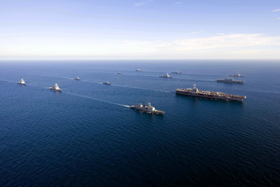 二是炮艦主義——“你不聽話,我就展示肌肉;再不聽話,我就動武,使用拳頭!弊罱(jīng)典的注腳是美國總統(tǒng)今年5月剛剛批準(zhǔn)的《2010年美國海軍建設(shè)概念》,把美國的所謂“海上利益”描述得淋漓盡致,宣稱美國海軍要鍛造六大核心能力:一是前沿存在;二是威懾;三是海上安全;四是海上控制;五是力量投送;六是人道主義救援。多么冠冕堂皇!但是,所謂的“前沿存在”,就是美國的炮艦可以到世界的各個角落橫行霸道,把美國的安全邊界前推到別人的家門口,什么黃海、南海,都是美國的安全邊界。所謂的“威懾”,就是你不聽我的話,我就揍你。所謂的“海上安全”,就是要保證美國的炮艦神圣不可侵犯,只有我的安全,豈管他人不安全?所謂的“海上控制”,奉行的仍是“誰控制了海上咽喉要道,誰就控制了海洋;誰控制了海洋,誰就控制了全世界”的邏輯。所謂的“力量投送”,明眼人一看,就知道它是指戰(zhàn)爭力量的投送,絕對不會是和平力量的投送。所謂的“人道主義救援”,就是只對美國人和美國的盟友實施“人道”,而對他人實施“霸道”。美國的行為方式表明,它仍然在堅持冷戰(zhàn)思維,仍然在奉行炮艦政策。這種炮艦主義是以叢林游戲規(guī)則為哲學(xué)基礎(chǔ)的,其基本原理就是以強凌弱、以大欺小。具有諷刺意味的是,迷信武力,只憑炮艦說話,于是就有了深陷于伊拉克戰(zhàn)爭和阿富汗戰(zhàn)爭的尷尬。