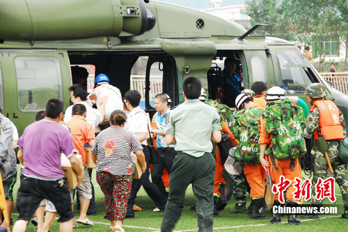 中午12時(shí)05分,空軍陸航團(tuán)派出兩架直升飛機(jī)前來支援,深入災(zāi)區(qū)探測(cè)道路情況和人員被困情況。從下午1點(diǎn)14時(shí)45分至下午4點(diǎn),消防支隊(duì)共派出30人,由參謀長(zhǎng)徐昌榮帶隊(duì)分六批次搭乘空軍陸航團(tuán)飛機(jī)帶上破拆工具、生命探測(cè)儀、照明工具、水上救援工具、安全救生繩索等已安全到達(dá)清平災(zāi)區(qū)。30名消防官兵到達(dá)災(zāi)區(qū)后,立即設(shè)立了消防部隊(duì)搶險(xiǎn)救援指揮部,指揮一線官兵積極投入救援工作,爭(zhēng)分奪秒營(yíng)救被困群眾。