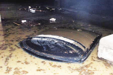 昨日凌晨1點過,還在睡夢中的張先生被窗外的雷鳴聲驚醒,接著他聽到樓下傳來喊叫,“車庫被淹了,快把外面的車開走!睆埾壬偷貜拇采吓榔饋,火急火燎地跑向車庫時,發(fā)現(xiàn)雨下不夠半小時,車庫的積水已經(jīng)漲到3米深,里面的7輛汽車全部被淹沒頂。直到昨日下午7時,車庫內(nèi)的淤泥還未被清理干凈。 (記者 薛小龍 攝影 呂甲 實習(xí)生 周烜)