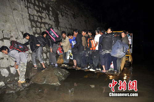 中新網(wǎng)汶川8月15日電(郭永全 張浪)14日19時30分,阿壩消防官兵接到群眾報警稱:徹底關(guān)往汶川縣城方向一公里處有滯留群眾上千人,請求緊急救援。