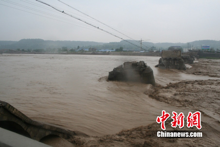 截止19日上午8時,安縣茶坪鄉(xiāng)降雨量達到149.3毫米、高川鄉(xiāng)降雨量達到117.3毫米、沸水鎮(zhèn)降雨量達到150.4毫米、秀水鎮(zhèn)降雨量達到134.4毫米、桑棗鎮(zhèn)雨量達到123.6毫米。強降雨導致安昌河、雎水河、秀水河流域河水猛漲,上午9:43分,縣城上游1公里處,花荄先林大橋被特大洪水沖垮。這是自8月2日凌晨黃土大橋垮塌后,在短短的20天內(nèi),安縣第二座被洪水沖垮的跨度在200米以上的大橋。