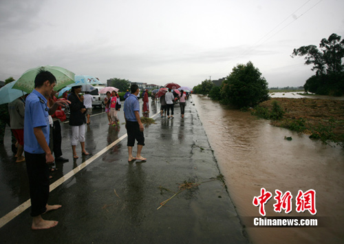 據(jù)介紹,眉山市東坡區(qū)、丹棱、洪雅、彭山遭遇暴雨到大暴雨,個別地方為特大暴雨。其中東坡區(qū)黃蓮埂水庫200.4mm、楊水碾162.5 mm、兩河口水庫141.7 mm,彭山縣保勝121.8 mm,丹棱縣城區(qū)137.6 mm,黨仲水庫124mm,丹棱縣石橋鄉(xiāng)135mm,中觀山120mm,梅灣120.5mm,東風106.8mm,雙橋鎮(zhèn)105mm,勝利100m,仁壽縣黑龍灘水庫125.7 mm.14時岷江彭山站水位425.74米,流量6290立方米每秒,青衣江洪雅站水位455.22米流量7700立方米每秒。