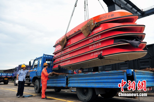據(jù)了解,這批發(fā)往災(zāi)區(qū)的防汛物資包括沖鋒舟80艘、橡皮舟40只、船外機120臺、救生衣1萬件、鉛絲網(wǎng)兜4000個、查險燈500盞等,于8月19日通過鐵路開行“搶”17次專列發(fā)運到成都東貨場進行轉(zhuǎn)運。