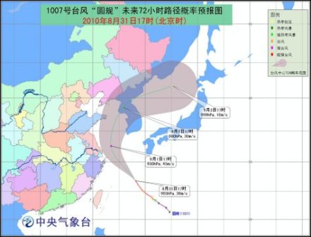 預(yù)計,“圓規(guī)” 將以每小時30公里左右的速度向西北方向移動,強度還將略有加強,將于31日晚上進入東海東南部海面,以后逐漸向浙江北部到江蘇南部一帶沿?拷⒂锌赡苡9月1日白天擦過這一帶沿海北上。