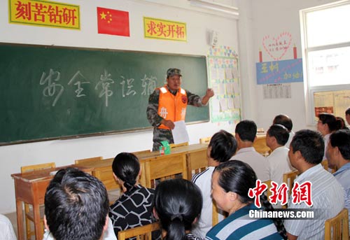 中新網(wǎng)舟曲9月1日電 (劉鵬)1日下午,是甘肅舟曲災(zāi)區(qū)新學(xué)期開學(xué)的日子,蘭州軍區(qū)某集團(tuán)軍舟橋團(tuán)的教官們采取理論輔導(dǎo)、觀看示意圖、動(dòng)作練習(xí)、模擬演練等方式,對(duì)舟曲城關(guān)小學(xué)600多師生展開了一場(chǎng)緊急避險(xiǎn)演練培訓(xùn)。演練培訓(xùn)包括火災(zāi)、洪災(zāi)、地震、泥石流等災(zāi)害發(fā)生時(shí)怎樣避險(xiǎn)、逃生等。