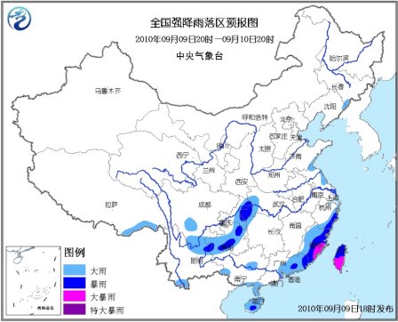 中新網9月9日電 據中央氣象臺網站消息,中央氣象臺9月9日18時繼續(xù)發(fā)布暴雨藍色預警:9月9日20時到10日20時,川西高原南部、重慶東部、湖北西南部、貴州中北部和西部、云南東北部、浙江東部沿海和南部、福建、廣東中東部和西南部、廣西南部、海南、臺灣等地有大雨或暴雨,其中,福建東南部、臺灣南部等地局部有大暴雨;另外,西藏東南部、江蘇東北部等地的部分地區(qū)有大雨;上述地區(qū)局部并伴有短時雷雨大風或冰雹等強對流天氣。
