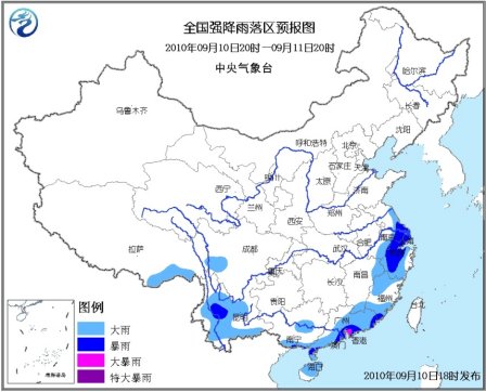 中新網(wǎng)9月10日電 據(jù)中央氣象臺網(wǎng)站消息,中央氣象臺9月10日18時(shí)發(fā)布暴雨藍(lán)色預(yù)警:9月10日20時(shí)到11日20時(shí),江蘇東部和南部、上海、安徽東南部、浙江大部、江西東北部和東南部、福建西北部和南部、廣東大部、廣西南部、海南中北部、云南大部、川西高原南部、西藏東南部等地有大雨或暴雨,局地有大暴雨;上述地區(qū)局部并伴有短時(shí)雷雨大風(fēng)等強(qiáng)對流天氣。