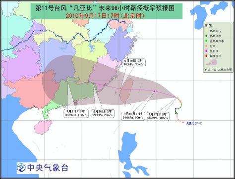 受其影響,17日20時至18日20時,臺灣以東洋面、東海南部、臺灣東部及北部沿海、福建中北部沿海、臺灣海峽將有7-9級大風,部分海域風力可達10-12級,“凡亞比”中心經(jīng)過的附近海面的風力有13-16級;臺灣東部將有中到大雨,局部地區(qū)有暴雨。