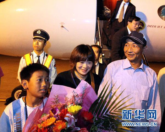 9月25日凌晨,被日方在釣魚島海域非法抓扣的中國漁船船長詹其雄搭乘中國政府派出的包機安全返抵福州。外交部部長助理胡正躍、福建省副省長洪捷序到機場迎接。