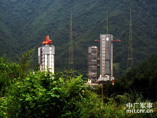 據(jù)了解,承擔(dān)“嫦娥2號(hào)”發(fā)射任務(wù)的西昌衛(wèi)星發(fā)射塔,20多天前剛剛完成“鑫諾6號(hào)”衛(wèi)星的發(fā)射任務(wù),它也是我國(guó)目前最高的發(fā)射塔架。由于昨晚這里剛剛下了一場(chǎng)雨,今天的天氣有些陰沉。放眼四望,在發(fā)射塔架周?chē)纳巾斏,環(huán)繞著一團(tuán)團(tuán)白色的云霧,給整個(gè)發(fā)射場(chǎng)披上了一層神秘的外衣。