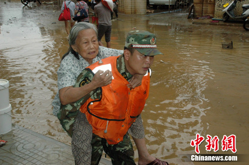 25歲的中士吳劍鋒的話讓老人改變了態(tài)度。前幾天,他到老人家中送過食品。他拉住老人的手,彎腰在他耳旁叫了聲“爺爺”,并耐心勸說,18歲的新兵樊朋飛則在另一旁勸說老奶奶,并遞上兩罐八寶粥和礦泉水。一番努力勸說終于打動了這對老人。十幾分鐘后,這對老人被吳劍鋒和樊朋飛背出,被送往文昌市人民醫(yī)院。