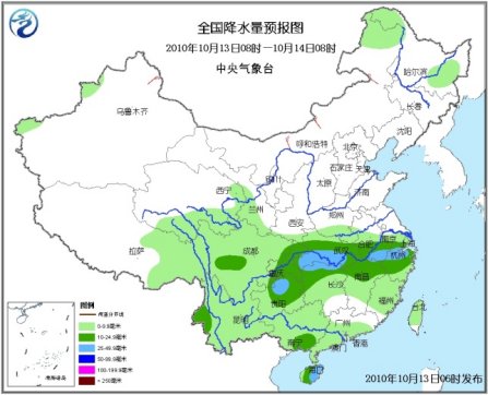 中新網(wǎng)10月13日電 據(jù)中央氣象臺(tái)預(yù)報(bào),未來(lái)三天,中國(guó)南方大部地區(qū)將以陰雨天氣為主,其中,四川南部、貴州北部、云南西北部、湖南北部、湖北南部、江西東北部、安徽南部、浙江北部、海南大部、臺(tái)灣東部等地有大雨或暴雨,上述地區(qū)局部并伴有短時(shí)雷雨大風(fēng)等強(qiáng)對(duì)流天氣。此外,新疆西部山區(qū)、西藏中東部、青海東部和南部、內(nèi)蒙古東北部、東北中北部、甘肅南部、川西高原北部等地還將有小到中雨(雪)或雨夾雪天氣。